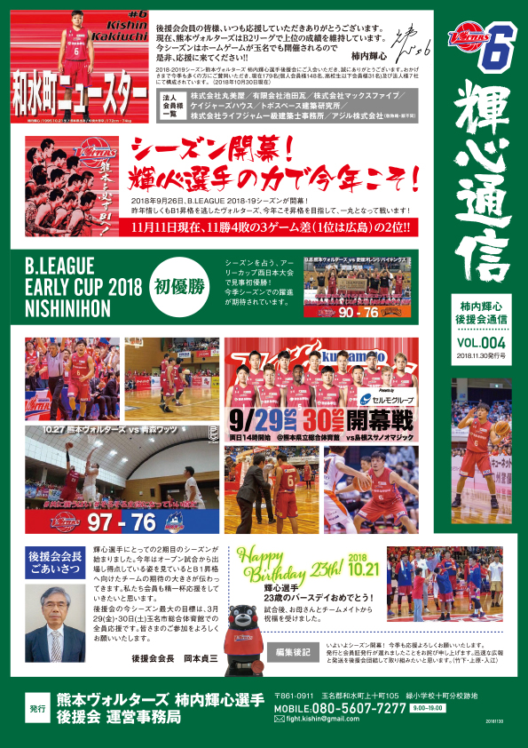 熊本ヴォルターズ柿内輝心選手の後援会の制作物をお手伝いさせていただいています。